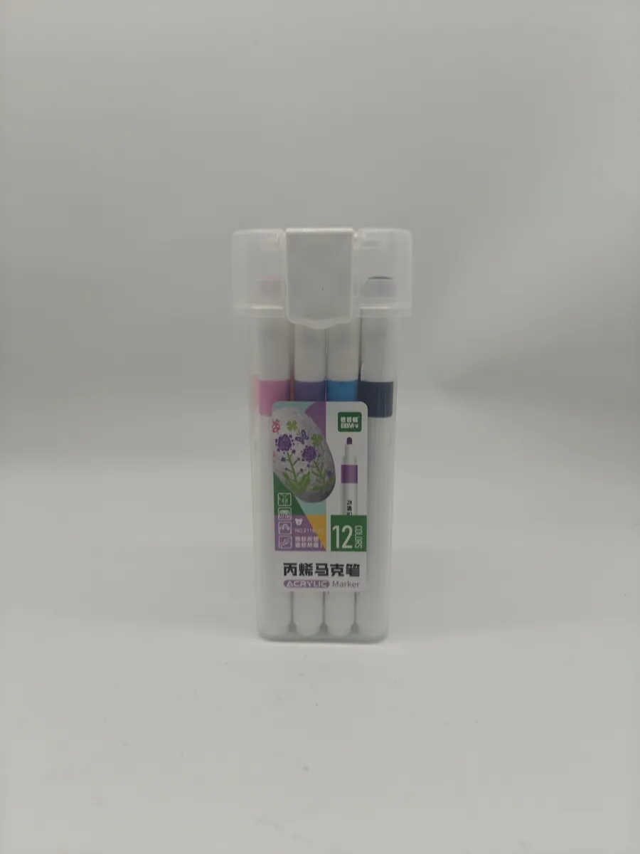 Набор от акрилни маркери в 12 основни цвята, идеални за рисуване и творчески проекти. Лесни за използване и с ярки цветове.