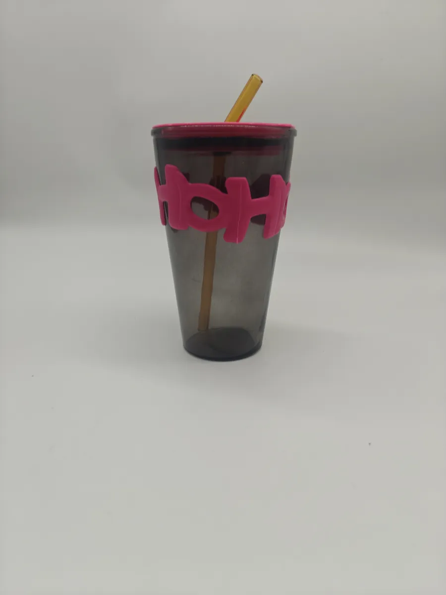 Голяма стъклена чаша със сламка — по-голям обем за смутита и коктейли. Модерен вид и удобна за носене.