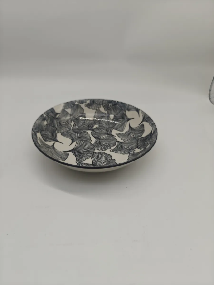 Керамична дълбока чиния с листа — с декоративен ботанически мотив и дълбоко легло за супи и чорби.