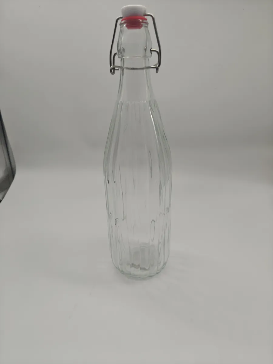 Стъклено шише за зехтин 1 л с метални скоби — елегантно и функционално за сервиране на зехтин и оцет на масата.